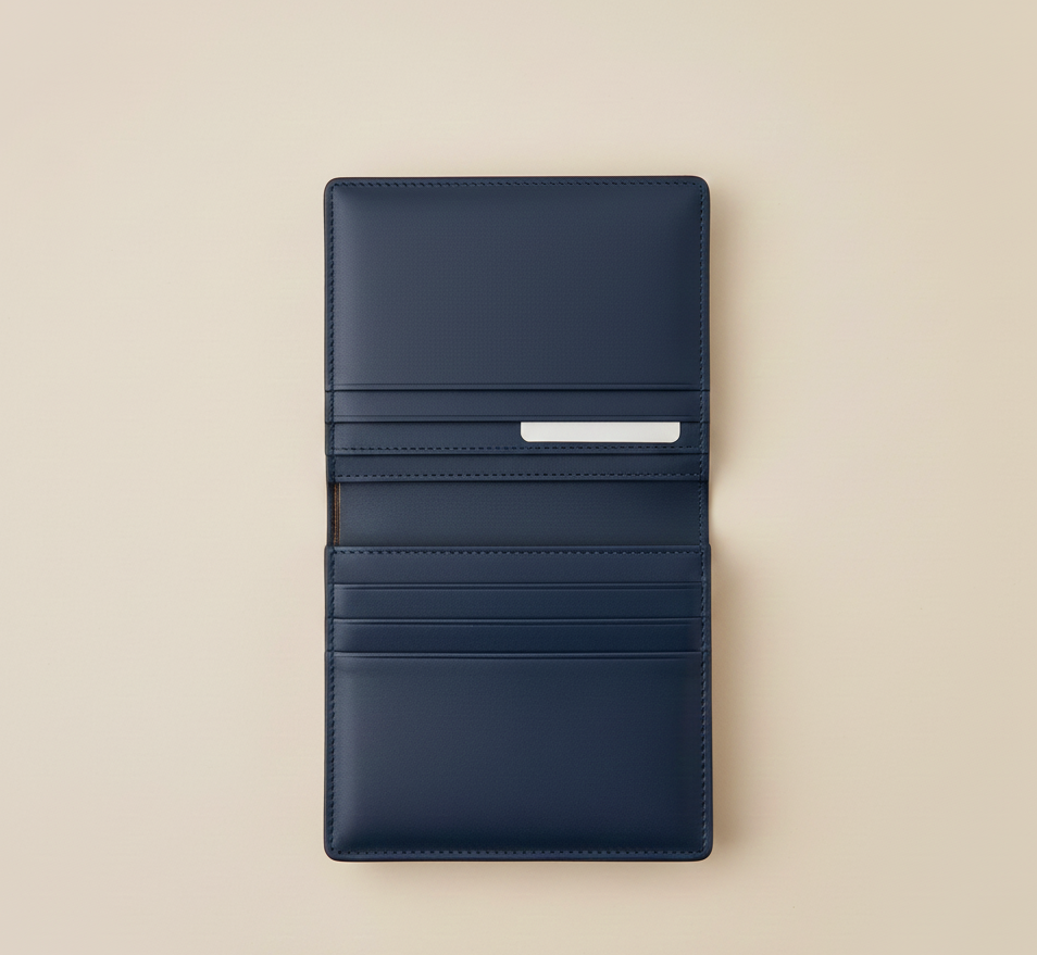 Гаманець з повним розміром і чітким розподілом секцій. Має щільний зовнішній шар.