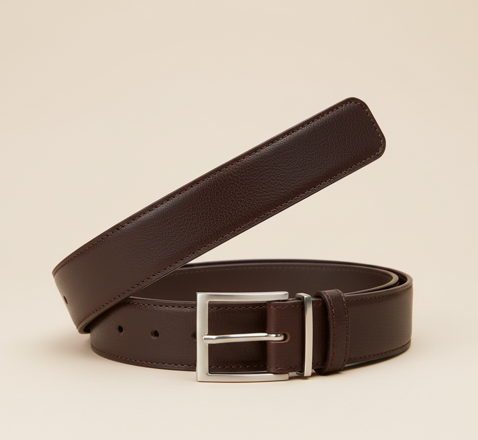Ремінь з дрібною текстурою та рівними краями. Фурнітура мінімалістичного типу.